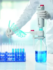 Whether you are dispensing solvents, acids, alkalis or saline solutions – the Dispensette® S bottle-top dispenser makes it easy, safe and efficient.With both the Dispensette® S and Dispensette® S Organic, you will always have the right dispenser at hand for a wide range of media. For efficient volume adjustment, you can choose between digital and analog adjustment, or fixed volume. Do you dispense long series, sterile applications or moisture-sensitive media? With numerous accessory options, the Dispensette® S also offers efficient solutions for special applications.